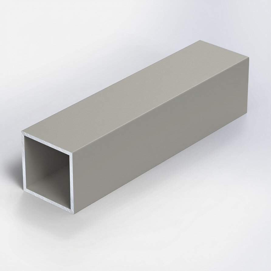 Een grijze aluminium koker van 20x20 mm (vierkant) met een wanddikte van 2 mm, grijs gepoedercoat in RAL 7044, 7030, 1019 of 9002. Dit vierkante, grijze kokerprofiel kunt u op maat bestellen in lengtes van 100 tot 2950 mm, optioneel in verstek gezaagd. Lees meer