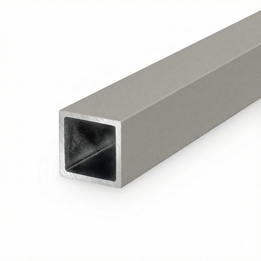 Grijze aluminium koker vierkant - 20x20x2 mm - grijs gecoat in RAL 7044, 7030, 1019 of 9002 - 6060 T6 (alu kokerprofiel / buis vierkant)