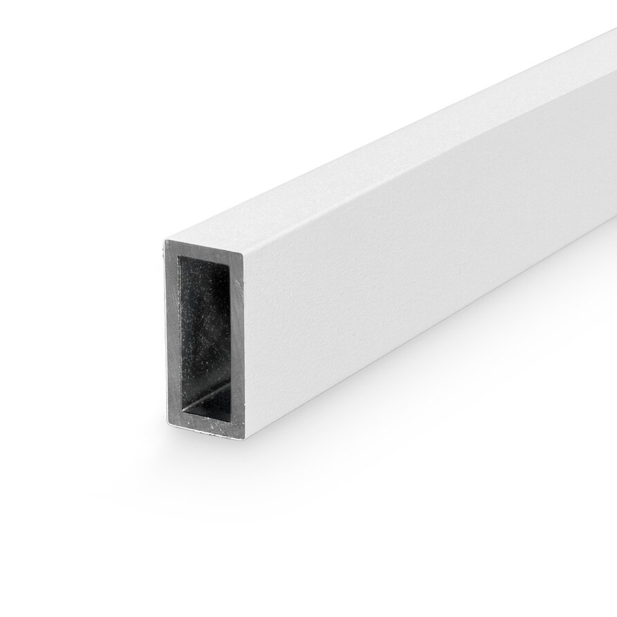 Witte rechthoekige aluminium buis, alu buisprofiel rechthoek, al koker ongelijk, ongelijkzijdige rechte buis / pijp, rechthoek kokerprofiel aluminium - (mat)wit gecoat in RAL-9016, 9010 of 9001.